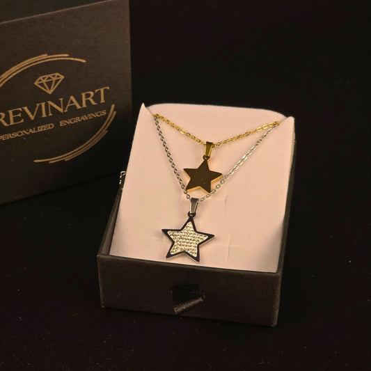 Collana Doppia Stella – Oro & Argento Personalizzabile