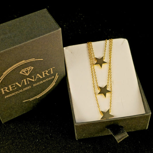 Collana Tre Stelle – Iniziali Incise (Oro o Argento)